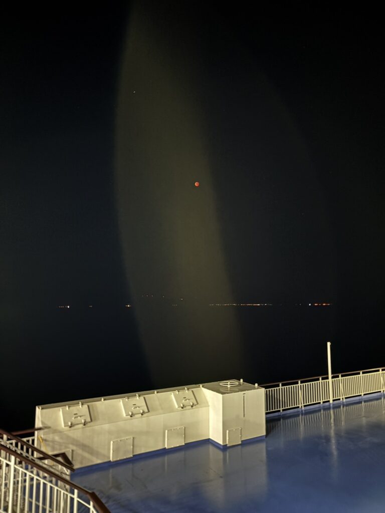 まさか船上で月食を見ることになるとは思っていなかったので、感動しました。