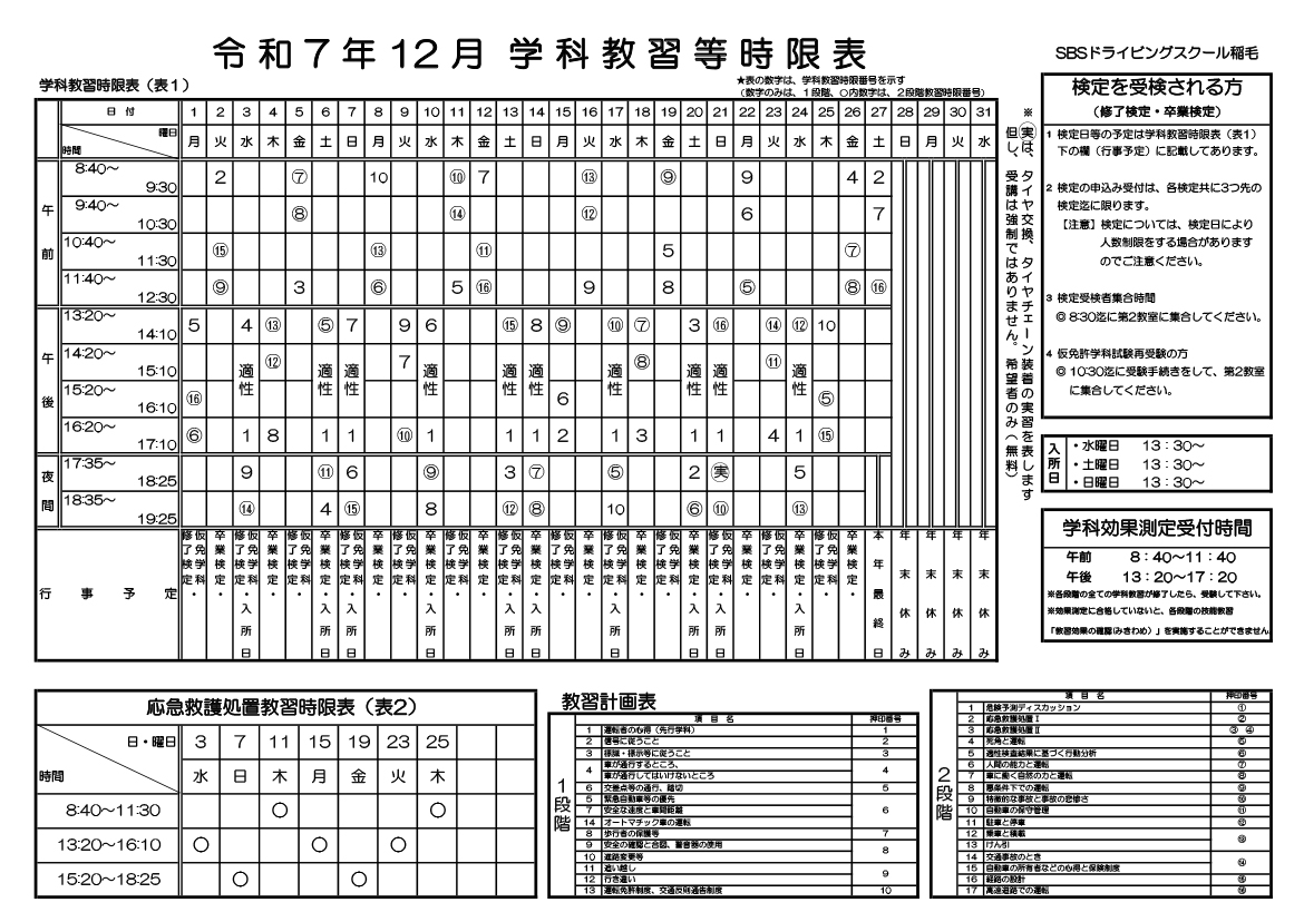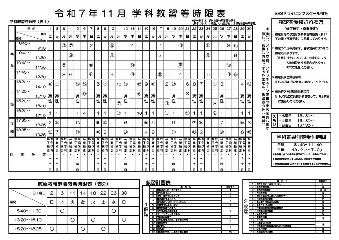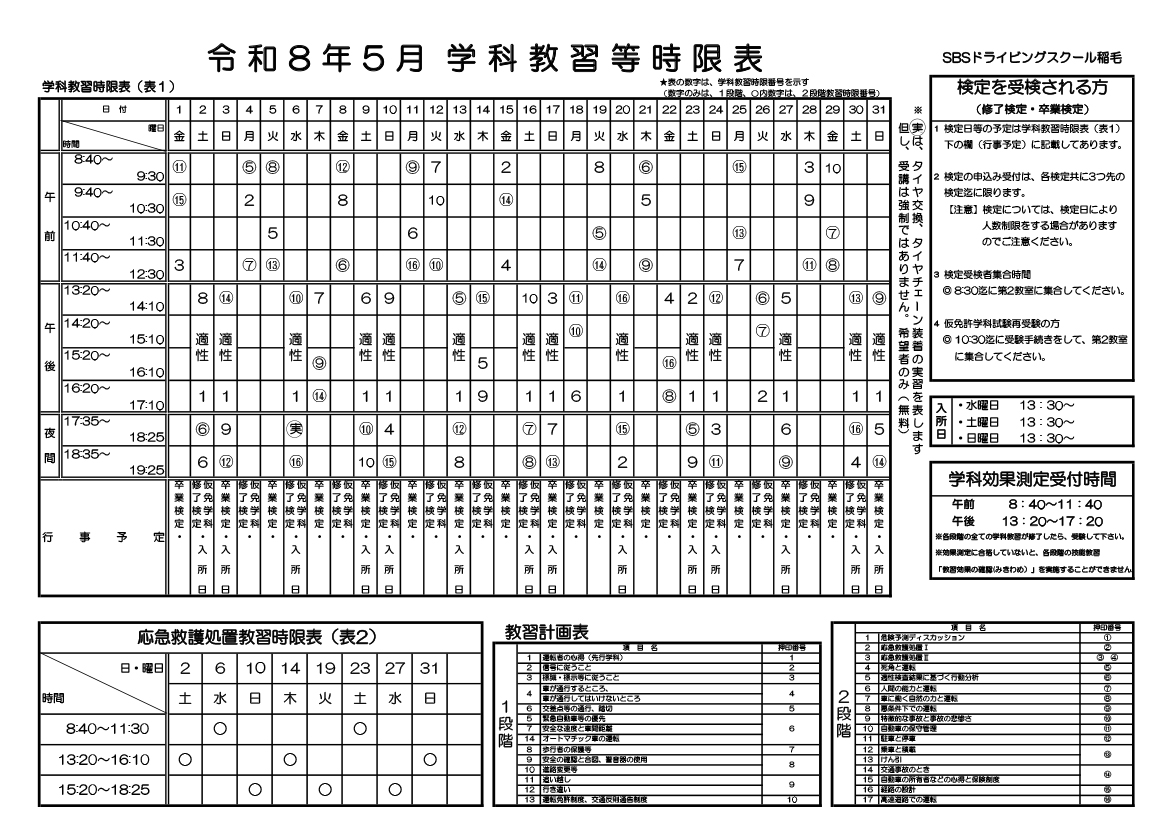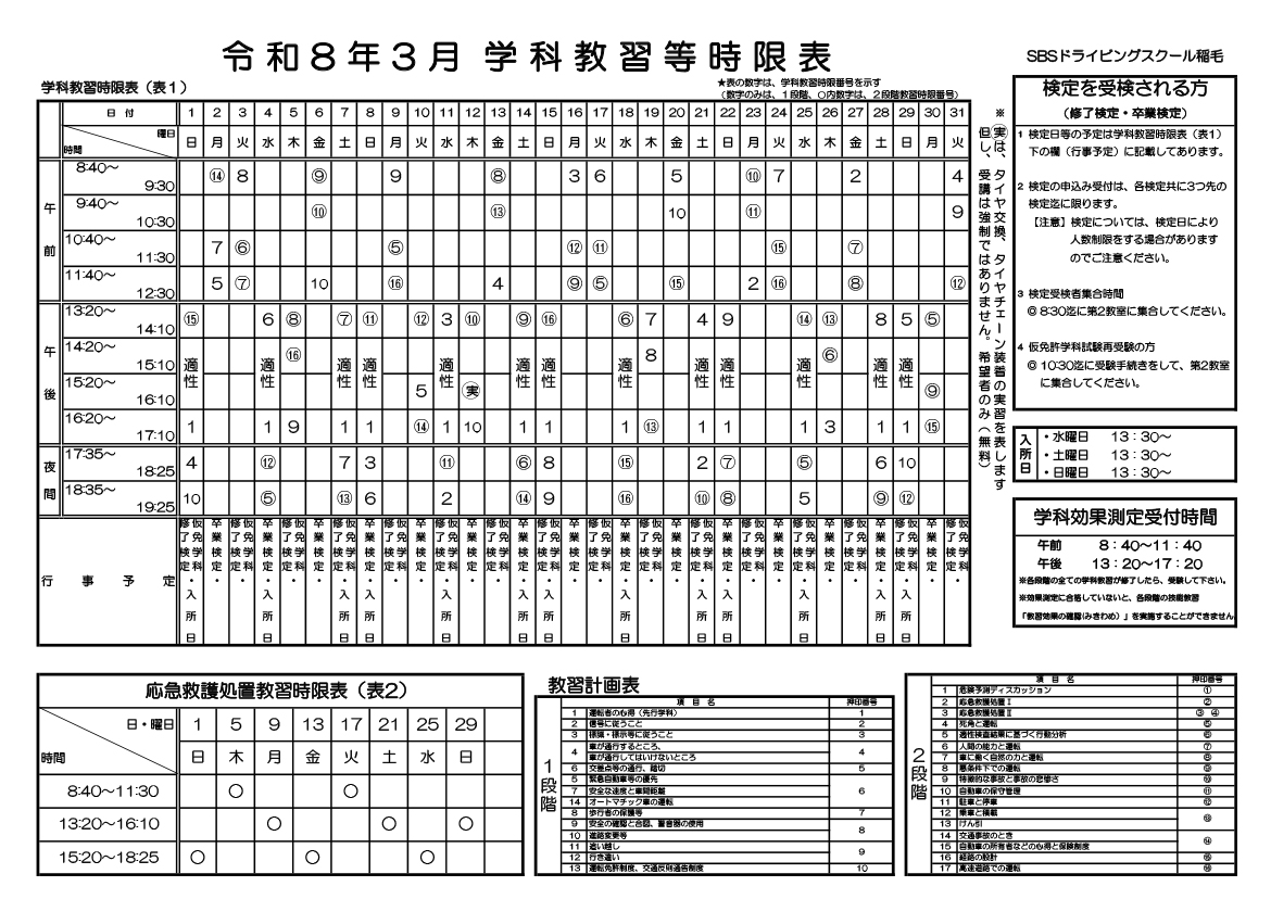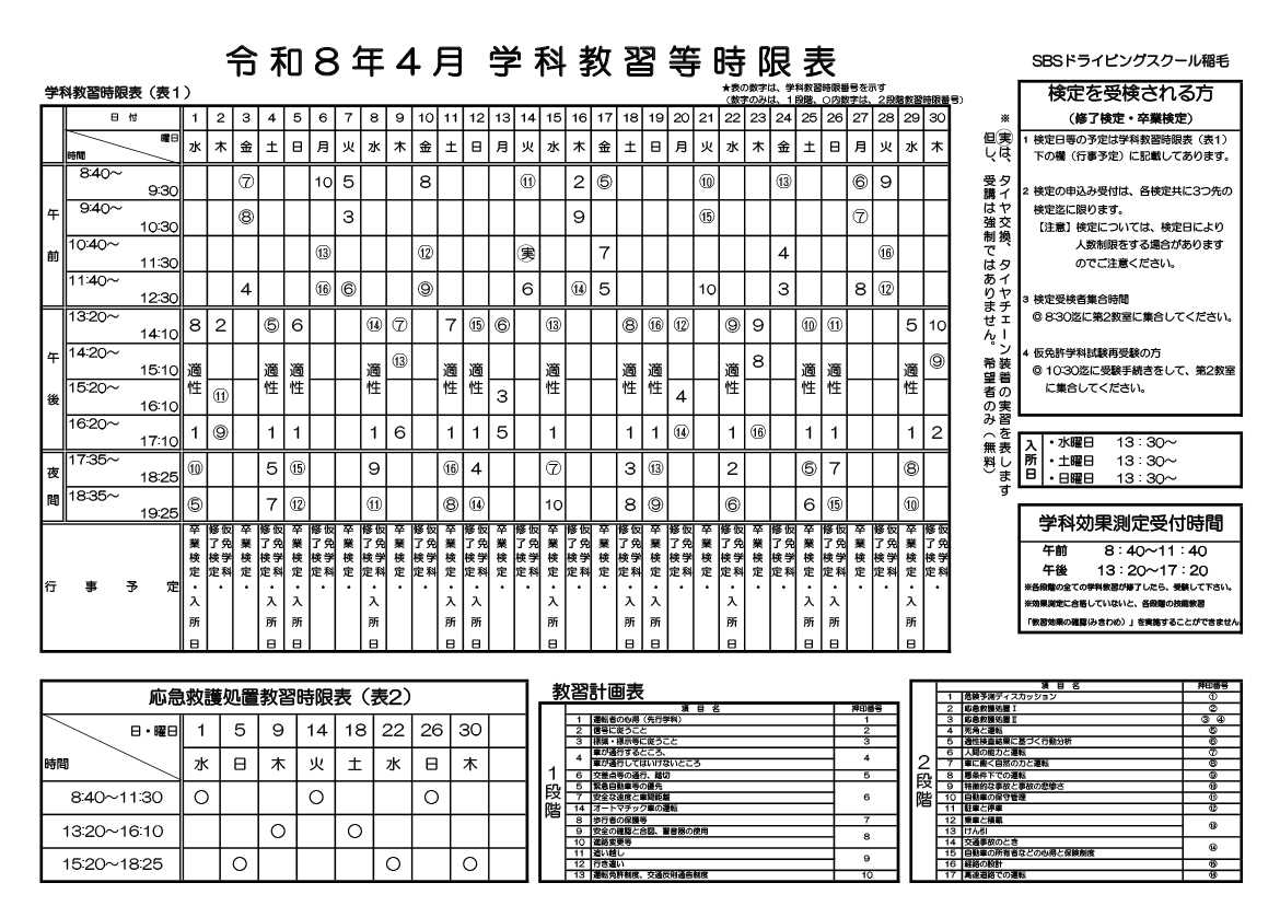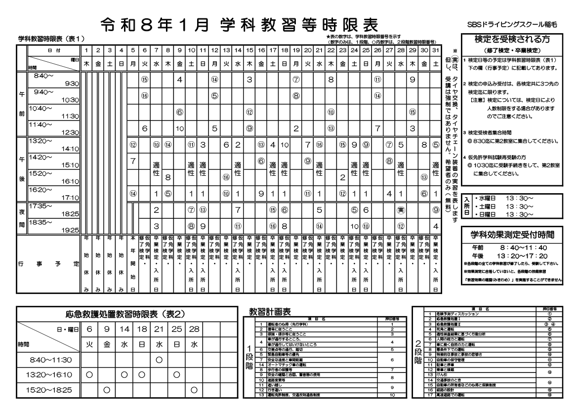 学科時限表を公開しています。技能教習の予定を考慮しながら、効率よく受講していきましょう。